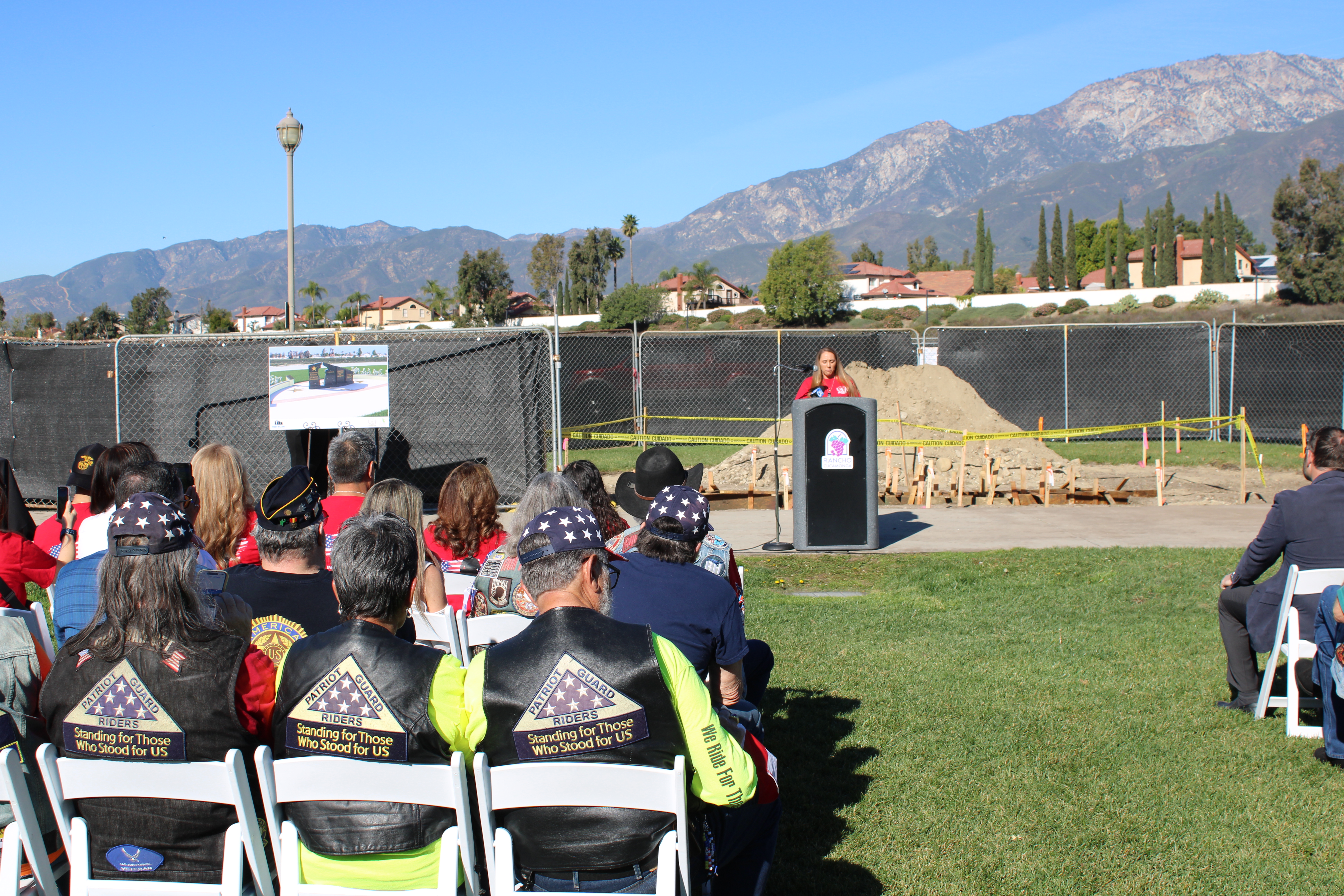 The City of Rancho Cucamonga gathered at Central Park (11200 Base Line Rd.) on January 15, 2026, for the groundbreaking of the Gold Star Memorial Monument, a new community memorial that will honor service members who lost their lives in active military duty and recognize the families who carry their legacy forward. Created by the Woody Williams Foundation, the two-sided black granite monument will feature a silhouette of a saluting service member and will be located near Freedom Courtyard. Developed in collaboration with the Legends Live Forever Foundation, Diversified Pacific Communities, and Architerra Design Group, this memorial will be the first of its kind in San Bernardino County and will join more than 150 similar monuments across the nation. Together, the Gold Star Memorial Monument and Freedom Courtyard will provide a lasting place for reflection, remembrance, and healing within Central Park.